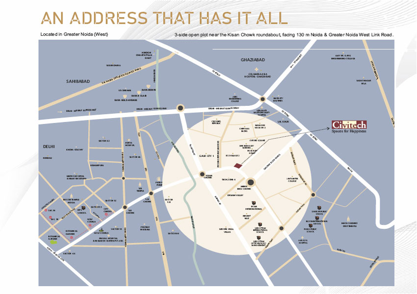 Being right on the Noida-Greater Noida 130 m wide link road, the structure enjoys easy recognition and attention from miles away.